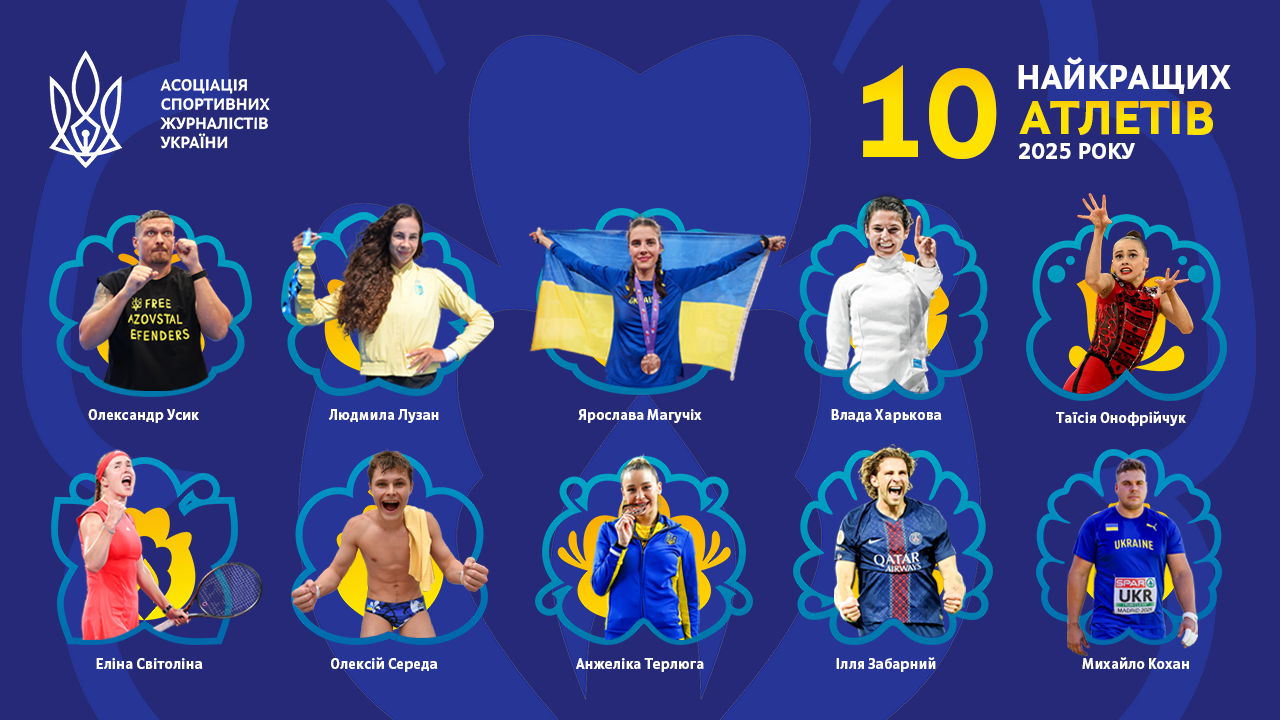 Одним із найбільш інтригуючих моментів Церемонії стало оголошення Десятки найкращих атлетів України, за підсумками голосування членів АСЖУ (загалом в опитуванні взяли участь 123 представники спортивних медіа). У такий же спосіб було визначено найкращого тренера року, команду року (в ігрових та неігрових видах спорту), а також найбільш знаковий спортивний момент 2025-го.
