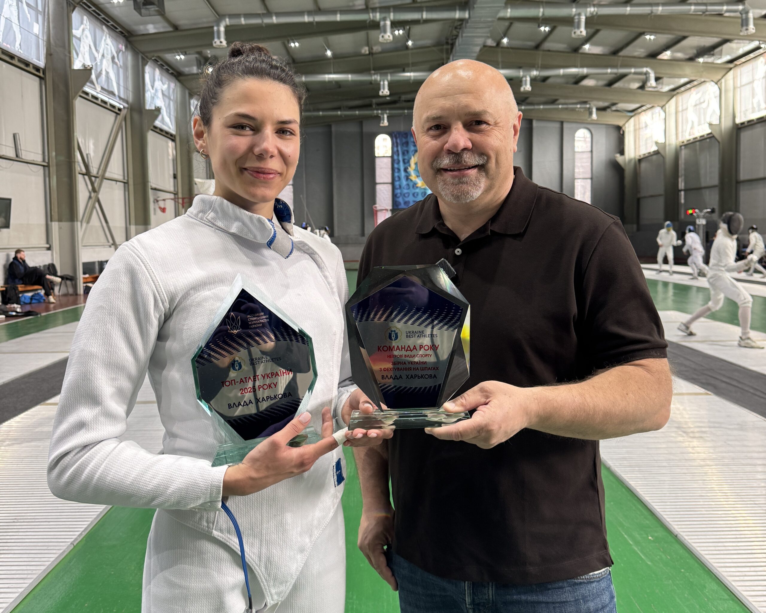 Одна із найяскравіших та найуспішніших атлеток 2025 року – чемпіонка світу та Європи Влада Харькова отримала нагороди Асоціації спортивних журналістів України. Оскільки Влада не зуміла бути на Церемонії нагородження найкращих атлетів року, яку АСЖУ провела 21 грудня, президент Асоціації Олександр Гливинський вручив фехтувальниці призи під час тренування Національної команди України з фехтування на шпагах.